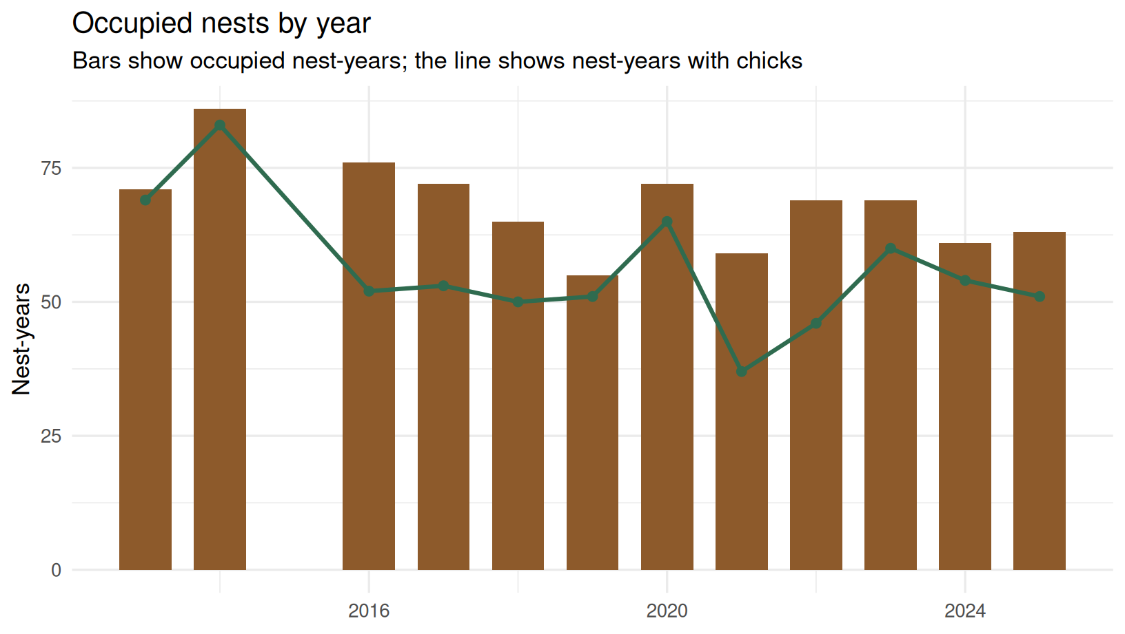 Together, these observations make it possible to describe both single breeding seasons and broader long-term changes in phenology and nest-box use.